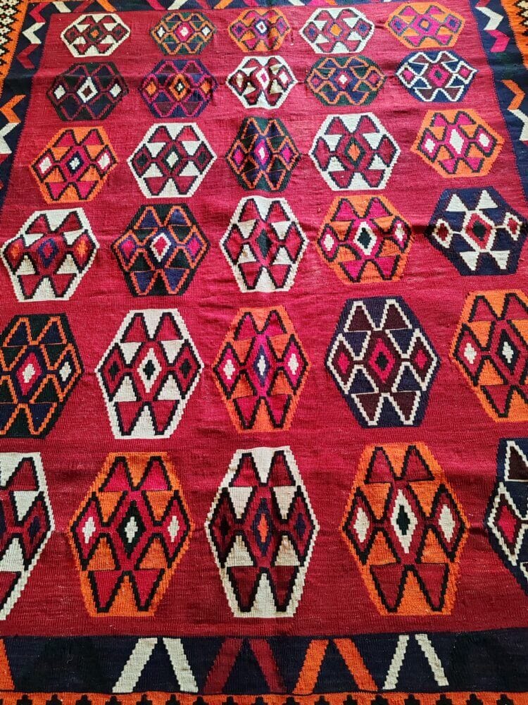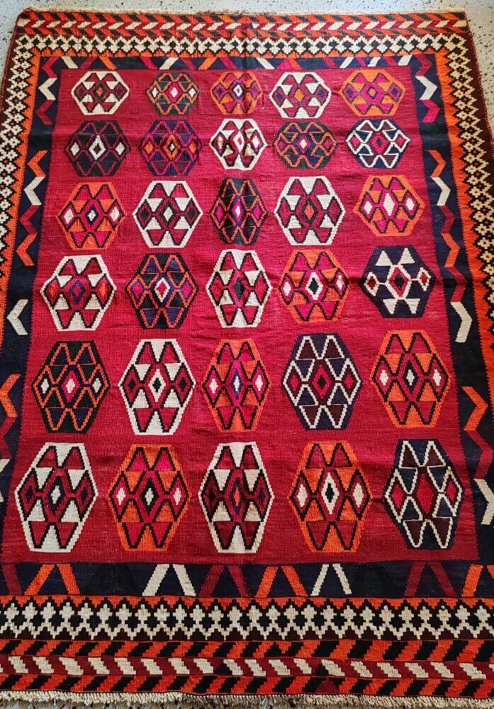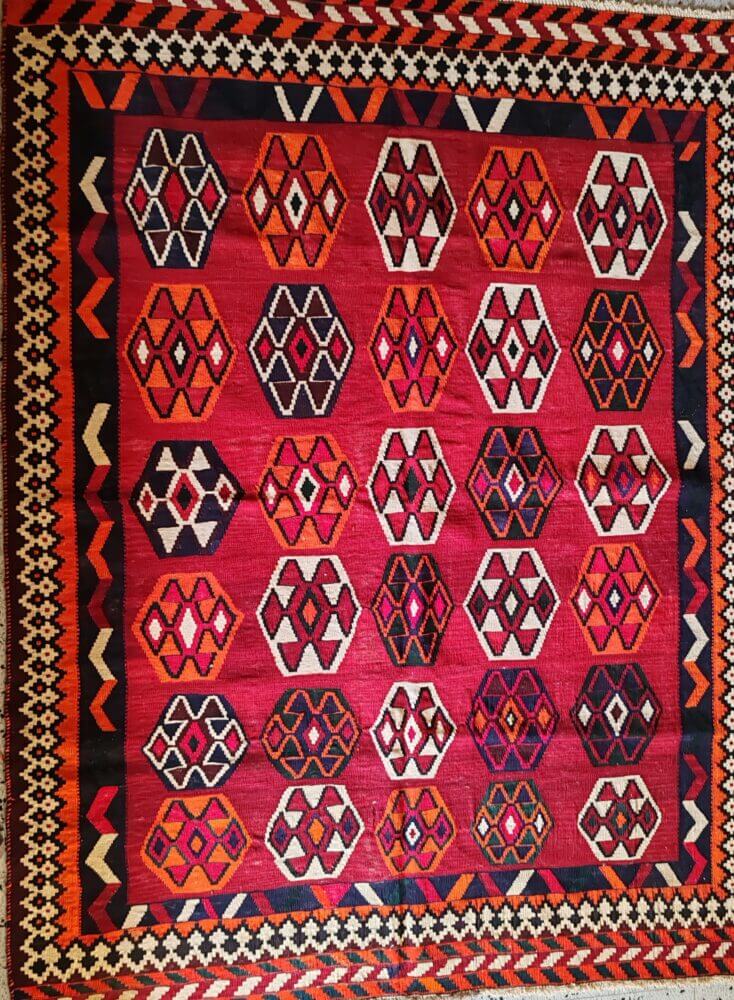 Tappeto kilim persiano, Qashqai molto fine di manifattura, 100% lana, colori molto vivaci, disegno geometrico perciò risulta moderno.
