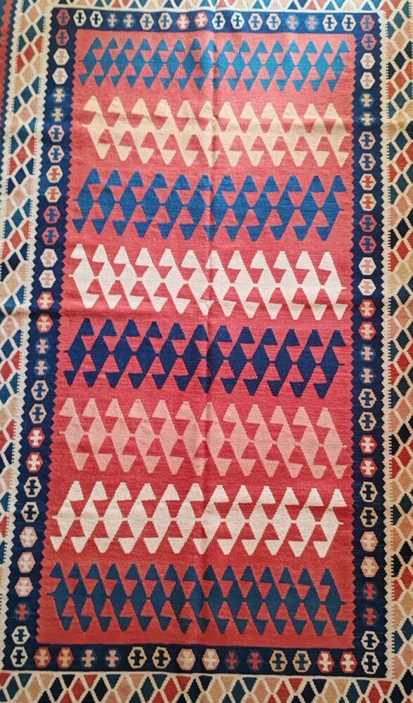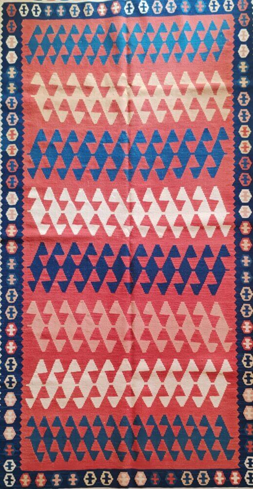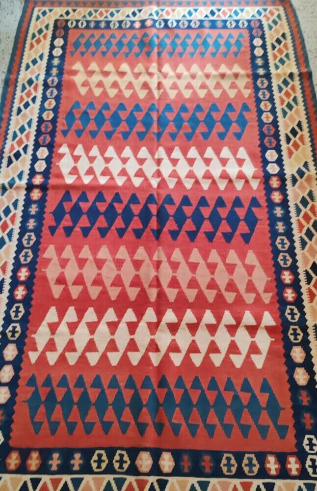 Tappeto kilim persiano, fine di manifattura, 100% lana, disegno geometrico e moderno.