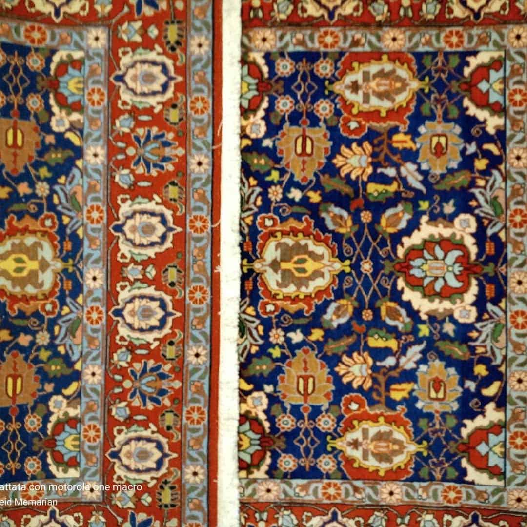 Bellissimo tappeto persiano Varamin, manifattura extra fine, il disegno a tutto campo decorato con palmette , simbolo tradizionale usato in questa zona, colori sono molto forti e vivaci.
