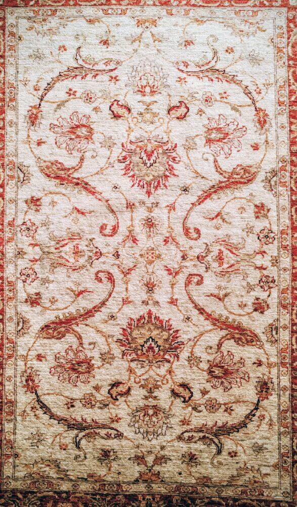 Tappeto orientale Zigler Ferahan, colori naturali pastelli , fondo chiaro quindi tappeto è molto luminoso, disegno floreale molto elegante ed è decorativo.